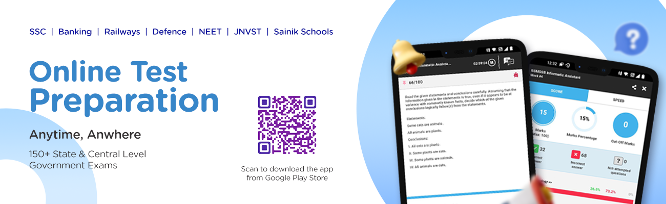 This is an online Test Preparation platform which is supported on the Computer and Mobile. We offer Mock Tests, Practice Questions, Tutorials and detailed Performance Analysis for more than 150 Central and State Level Government Exams, in Hindi and English medium.